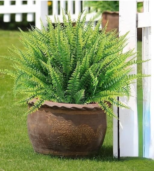 La texture des frondes imite parfaitement celle des vraies fougères, avec une surface légèrement mate et des bords finement dentelés.