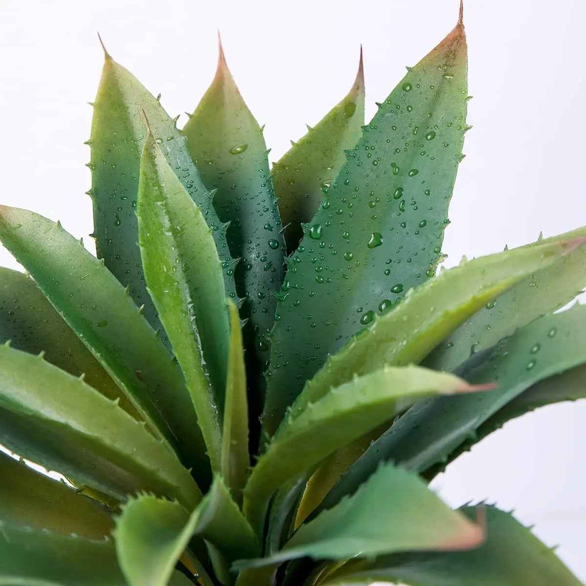 Chaque feuille possède une texture réaliste imitant parfaitement l’aspect succulent de l’aloe vera véritable, avec des bords finement dentelés caractéristiques de cette plante.