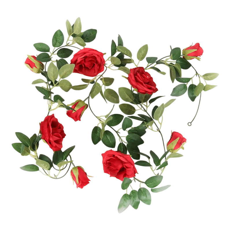 Cette guirlande fleurs artificielles se prête parfaitement à la décoration de tables de fête, au contour de miroirs, ou à l’ornement de rampes d’escalier.