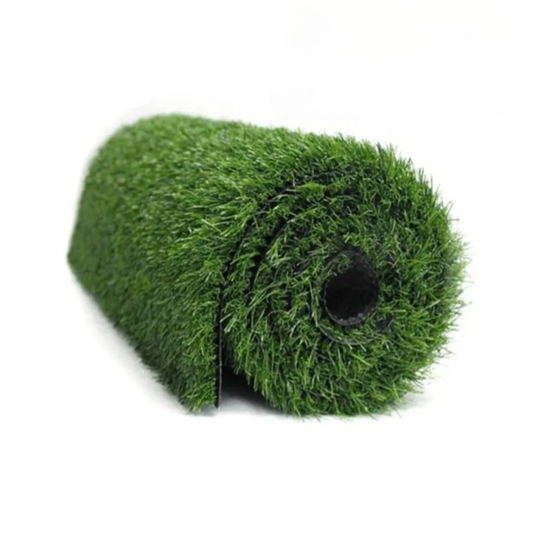 Le gazon artificiel se présente sous forme de rouleau compact, facilitant le transport et le stockage avant installation.
